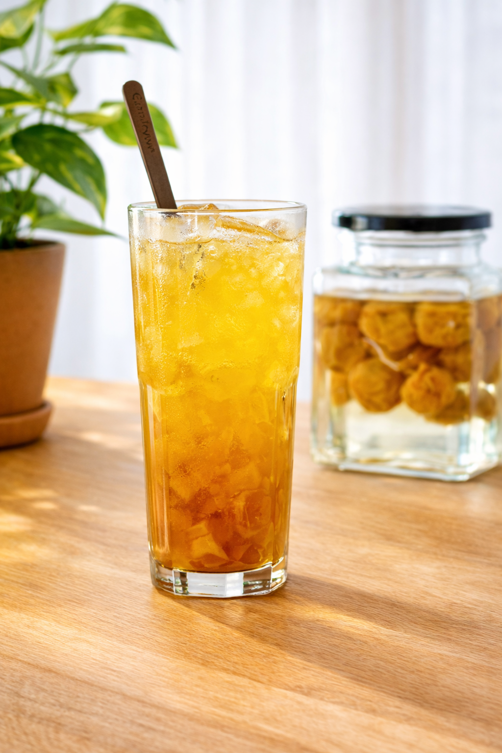 1. Vị chua ngọt hài hòa, đậm đà Những quả mơ tươi được chọn lọc kỹ càng, ngâm đủ thời gian để tiết ra phần mật sóng sánh, thơm lừng. Khi pha chế, chúng tôi gia giảm lượng đường và đá vừa đủ, tạo nên ly nước mơ có vị chua thanh nhẹ nhàng chứ không gắt, ngọt dịu vừa phải, giữ trọn hương thơm tự nhiên của quả mơ chín.